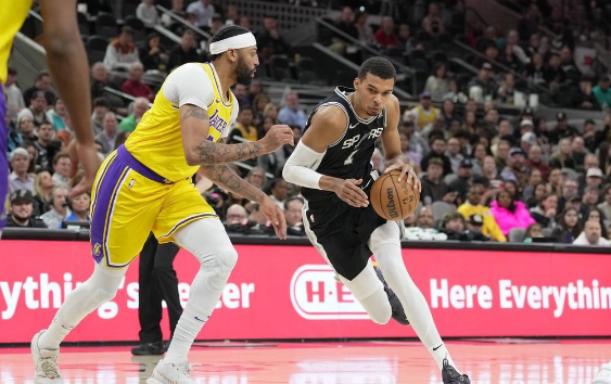 篮球直播吧12月14日讯 NBA常规赛,客场作战的洛杉矶湖人以122-119击败圣安东尼奥马刺,马刺遭遇18连败。戴维斯37分10篮板1助攻,文班亚马30分13篮板2助攻。